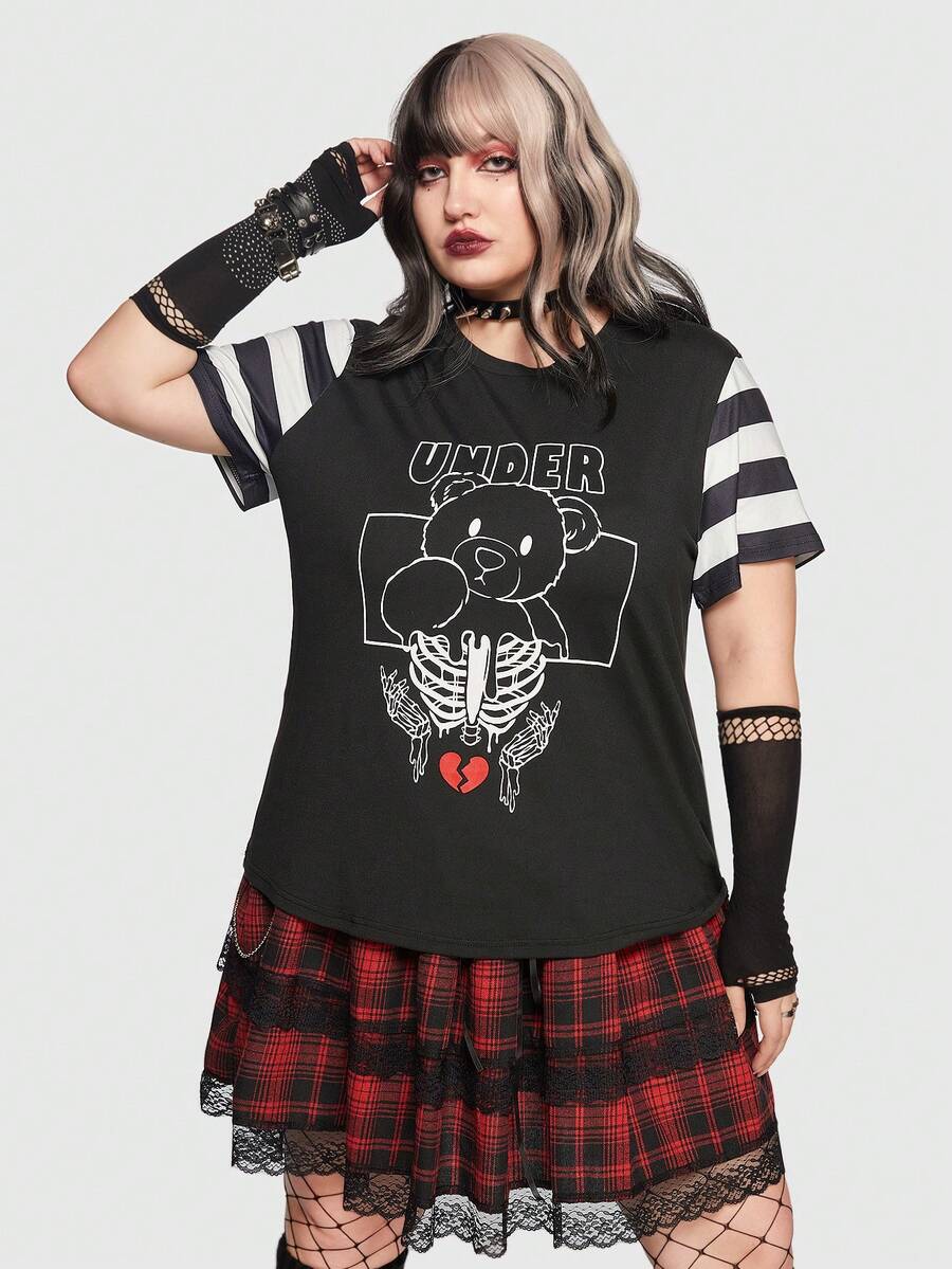 Kawaii Talla grande Camiseta de rayas & con estampado de dibujos animados