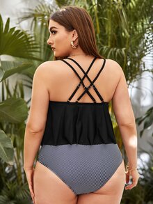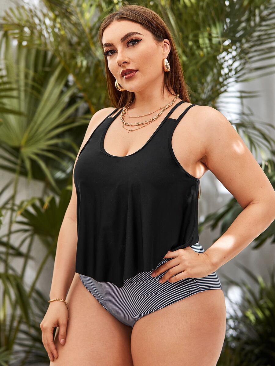 Tankini de talla grande a rayas con bajo de pañuelo para playa de verano