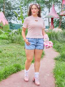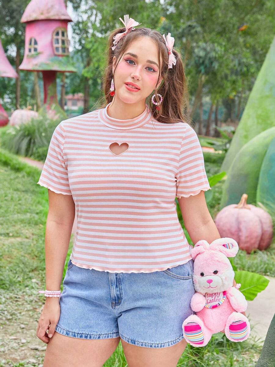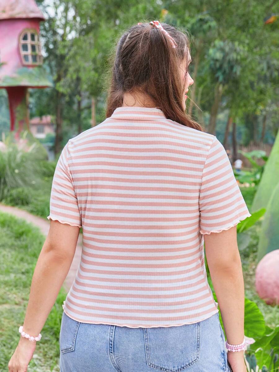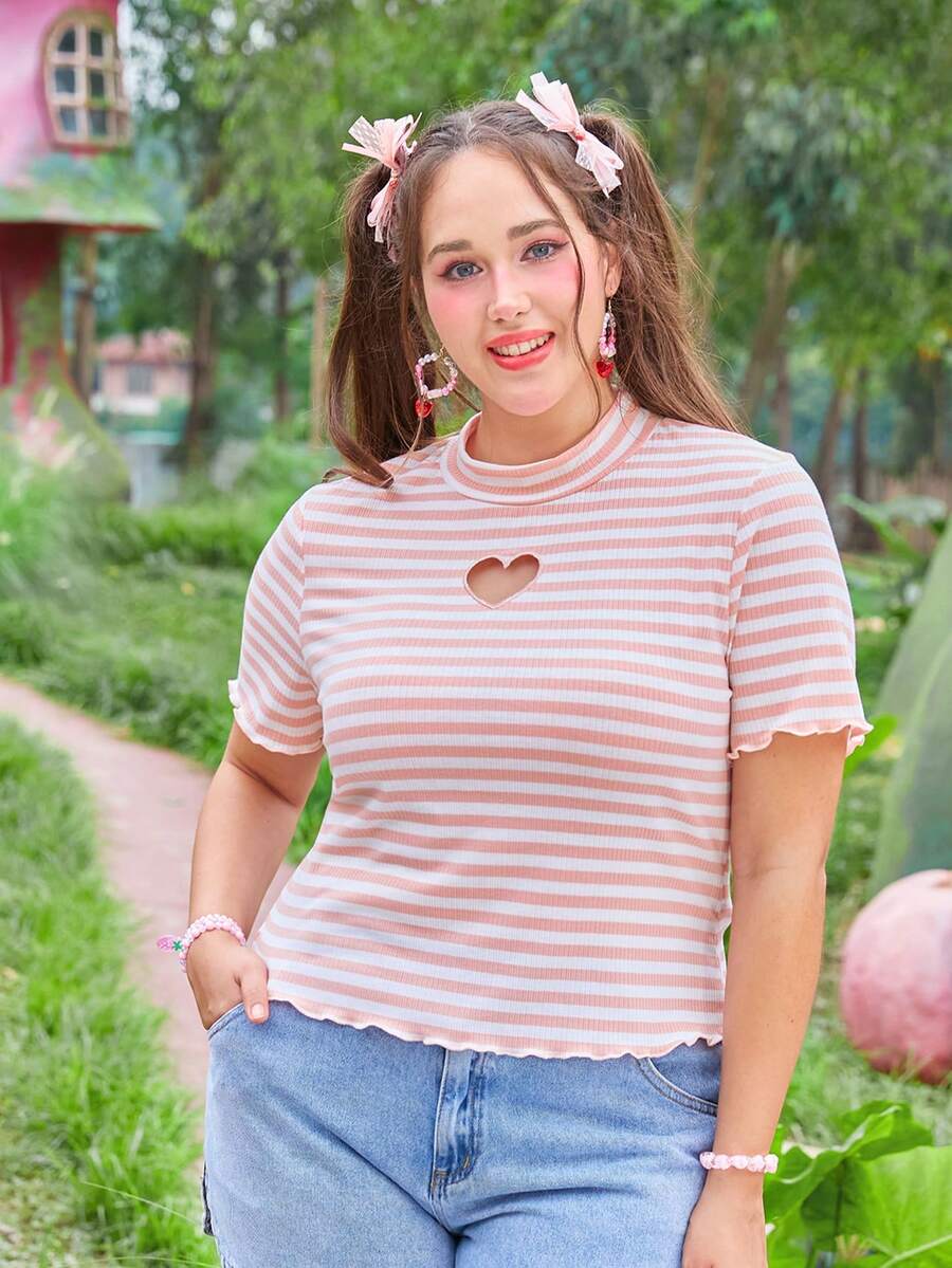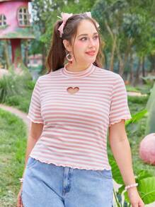 Camiseta de rayas corazón recortado ribete en forma de lechuga