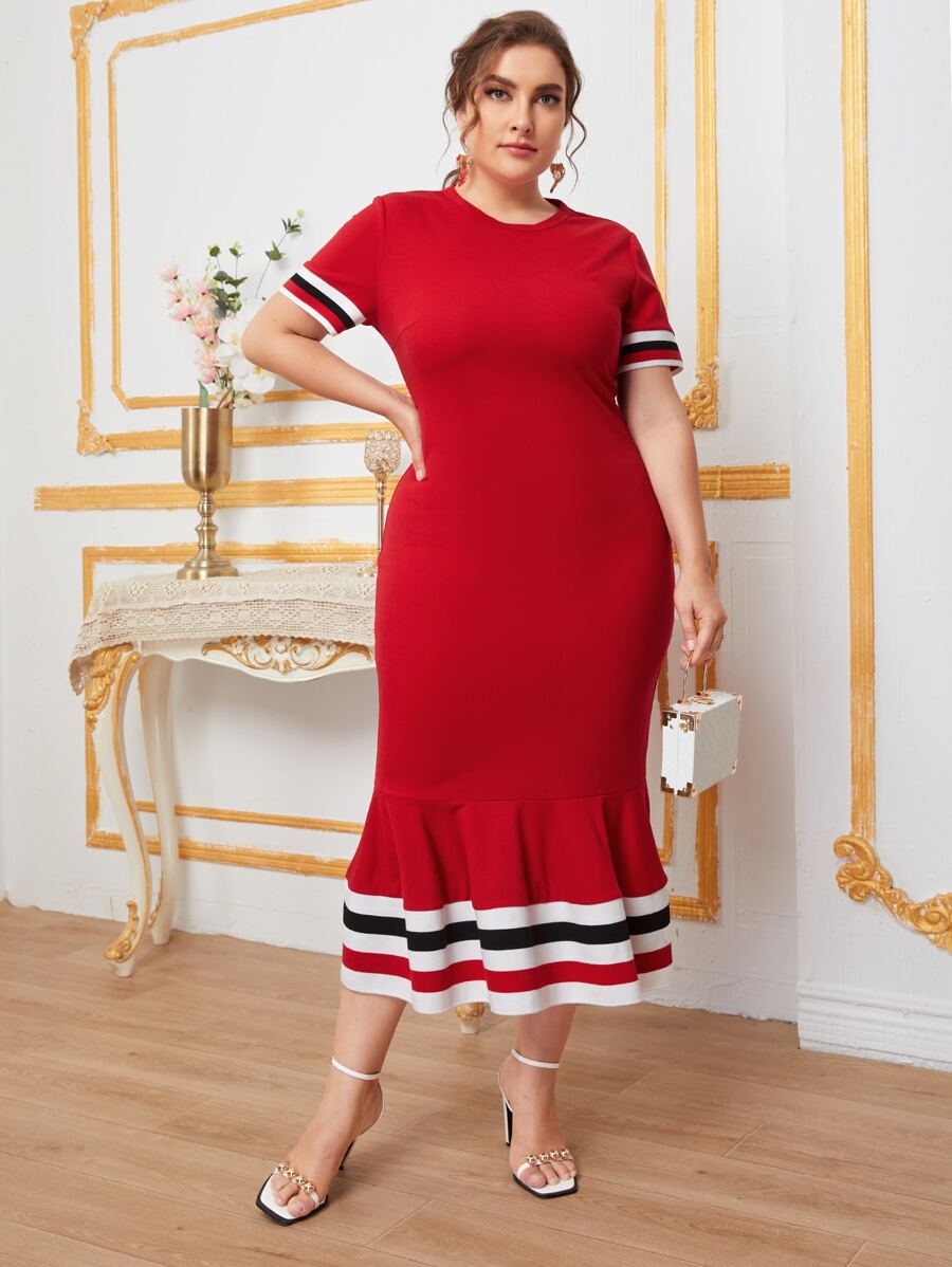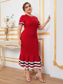 Vestidos Tallas Grandes Dobladillo sin costuras A rayas Casual