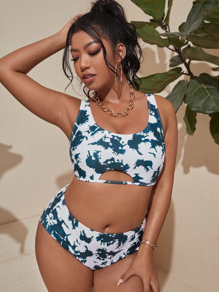 Conjunto de bikini teñido anudado de talla grande para playa de verano
