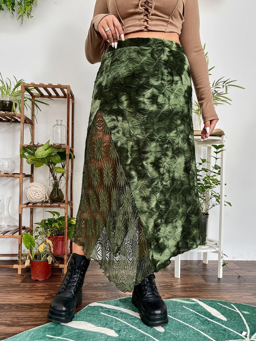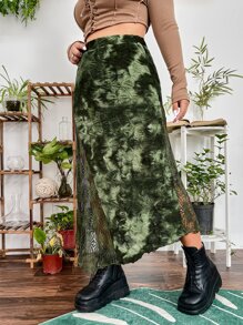 Falda de tie dye con encaje en contraste bajo asimétrico