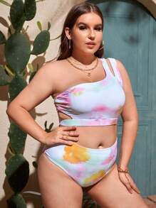 Conjunto de bikini con estampado tie-dye de talle alto y talla grande para la playa en verano