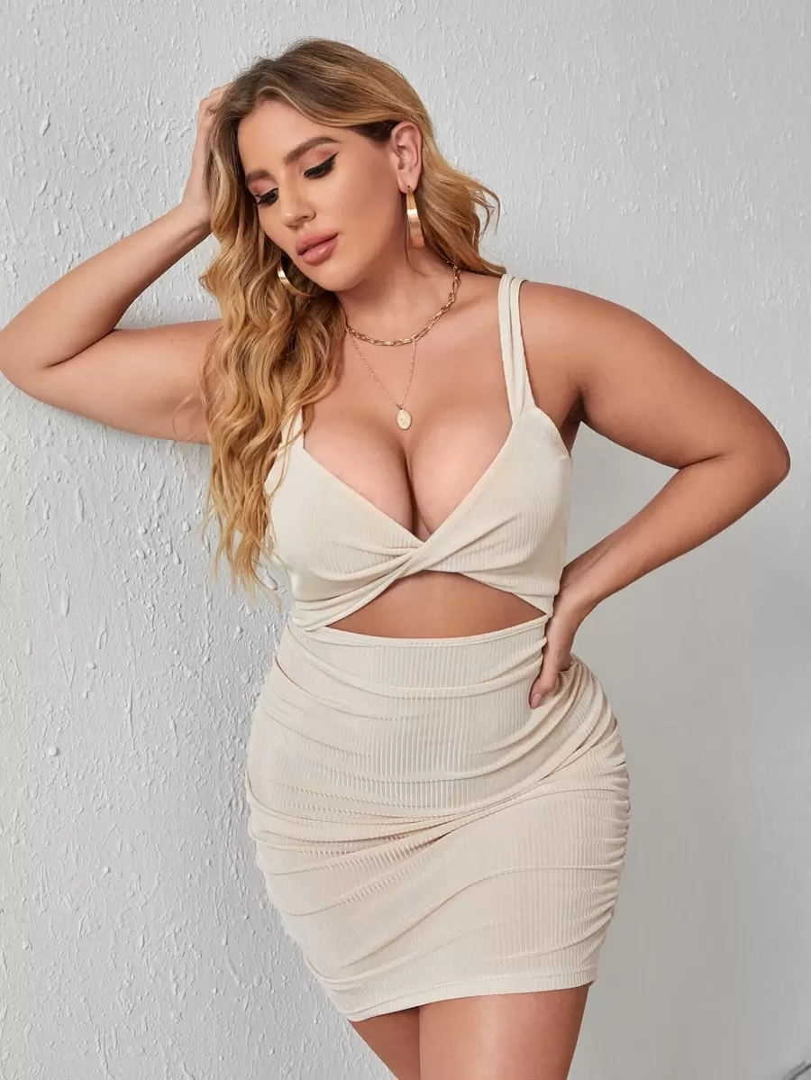 Vestidos Tallas Grandes Cut-out Drapeado Pliegos Liso Sexy