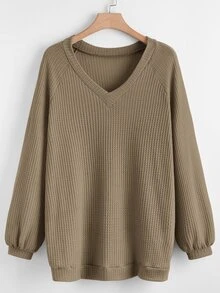 Sudadera waffle de manga raglán escote V