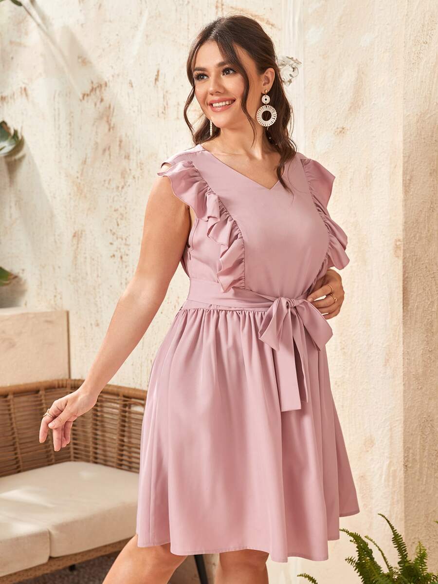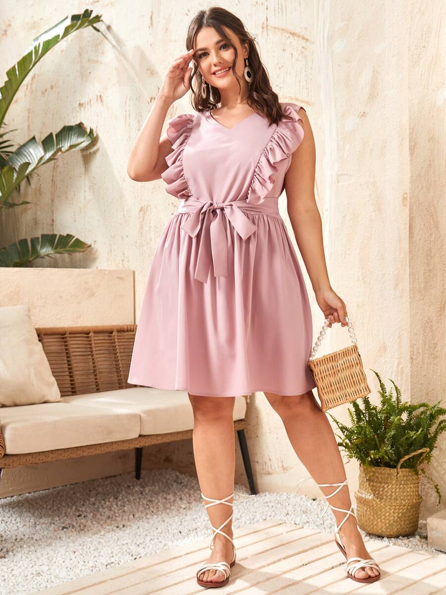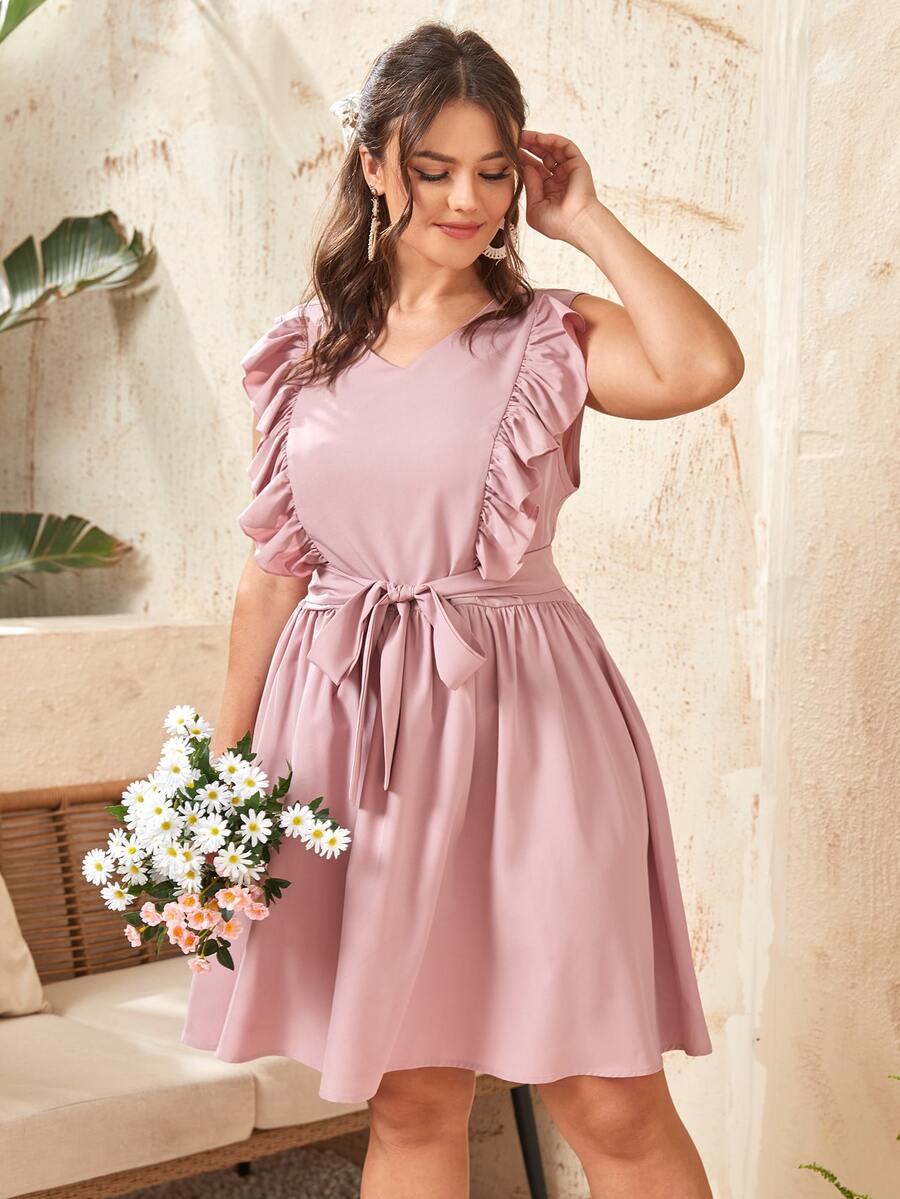 Vestidos Tallas Grandes Volante Liso Dulce
