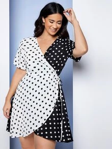 Vestidos Tallas Grandes Envolvente Lunares Casual