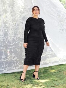 Vestidos Tallas Grandes Drapeado Liso Elegante