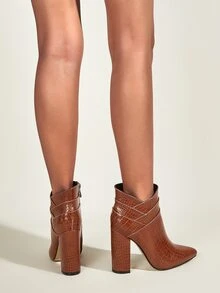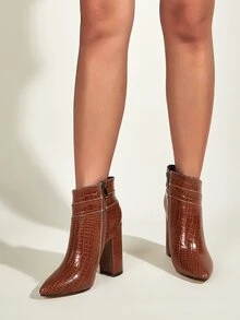 Botines Con Punta Fina, Tacón Grueso Y patrón de piel de cocodrilo Estampado Para Mujeres