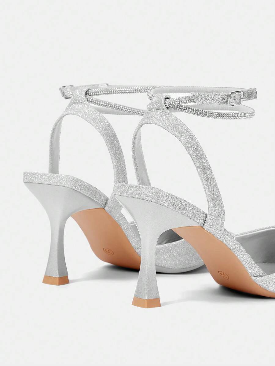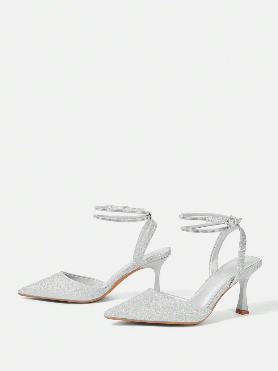 Sandalias casuales de tacón de aguja con una hebilla, punta afilada, empeine bajo y sin talón, ideales para Año Nuevo, Día de San Valentín y días festivos