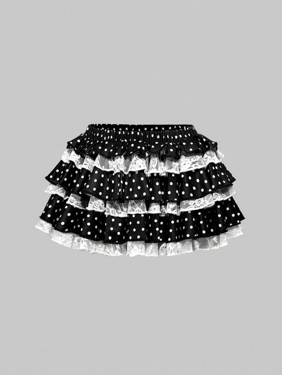 J-Fashion Minifalda supercorta de verano para mujer, con superposición de lunares y encaje