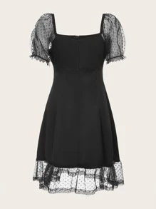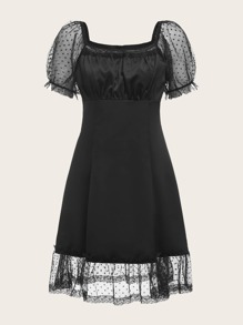 Vestido de lunares de malla pecho con fruncido bajo con fruncido