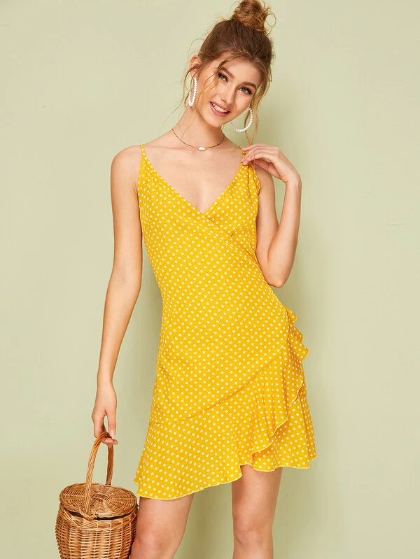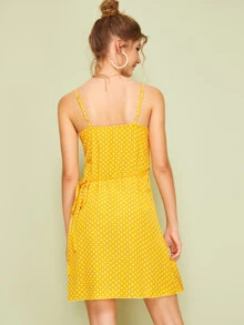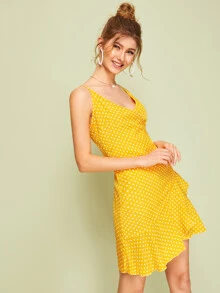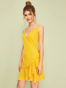 Vestido slip cruzado bajo fruncido de lunares