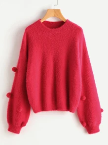 Jersey flojo con manga de farol con detalle de pompones