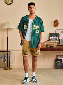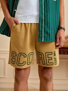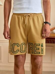 Prep Hombres Shorts con estampado de letra de cintura con cordón
