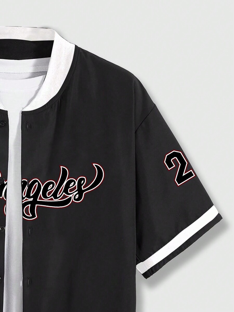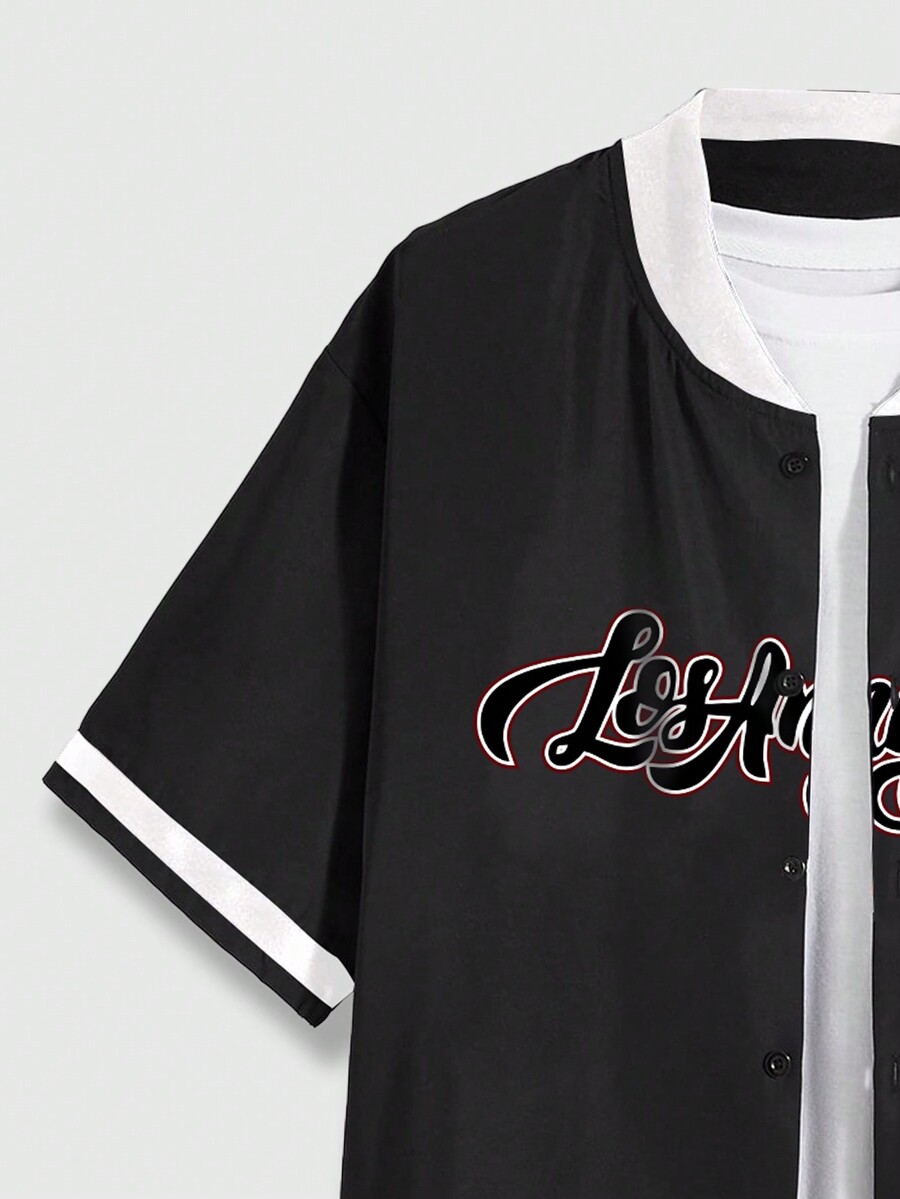 Prep Hombres Camisa Con Cuello Tipo Béisbol Con Ribete En Contraste Y Estampado De Letra Sin Camiseta