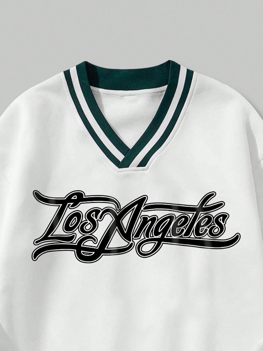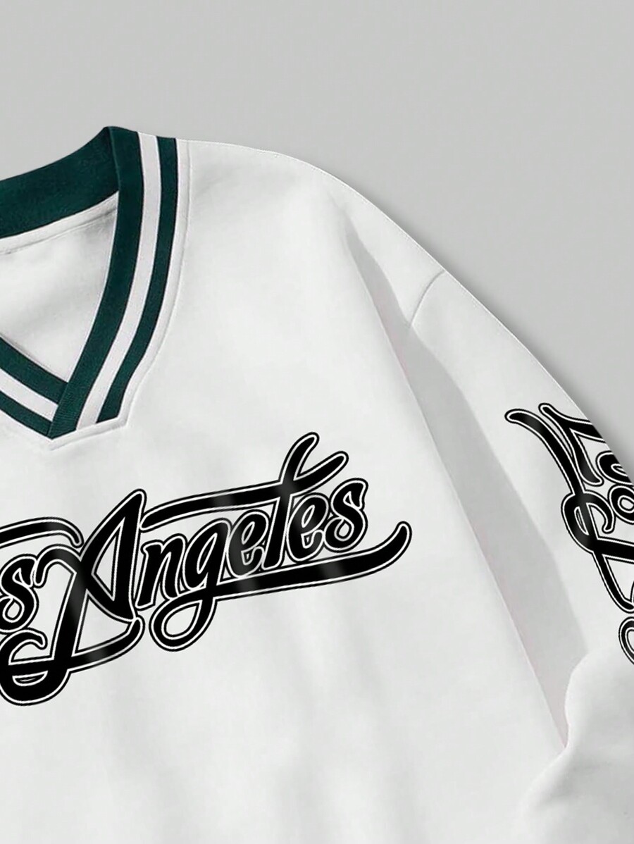 Prep Sudadera térmica con gráfico de letras y ribete a rayas para baloncesto, para escuela, para otoño e invierno