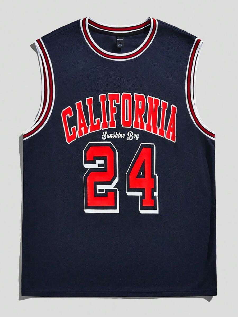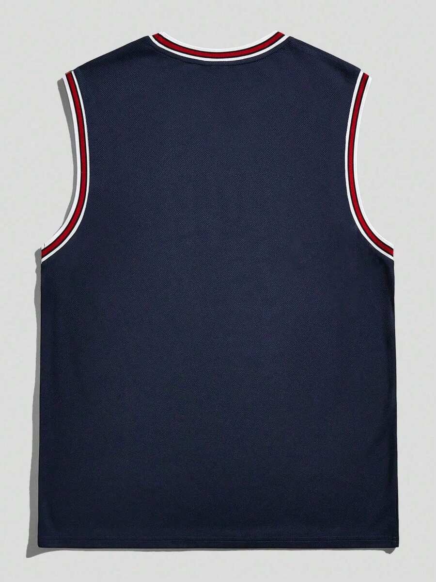 Prep Camiseta de tirantes casual de hombre con estampado de letras y números y ribete de contraste, para verano