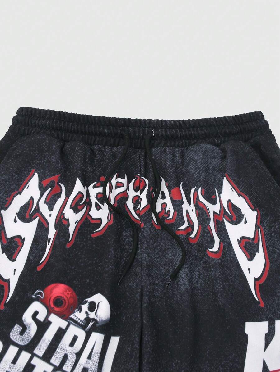 Street Life Pantalones cortos casuales con estampado digital, bolsillo con cordón y borde deshilachado para hombres