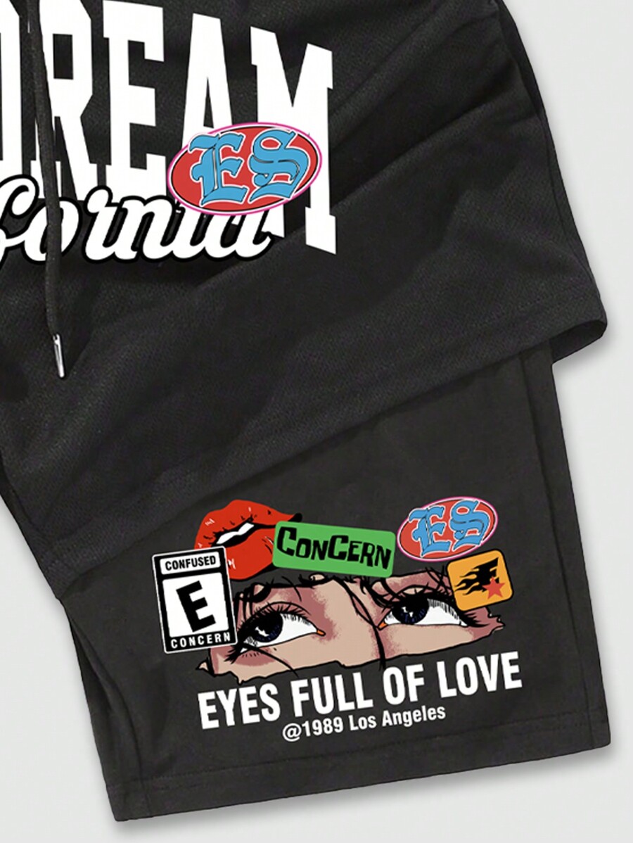 Street Life Shorts de baloncesto casuales 2 en 1 con cordón delantero y bolsillo con estampado de letra para hombres