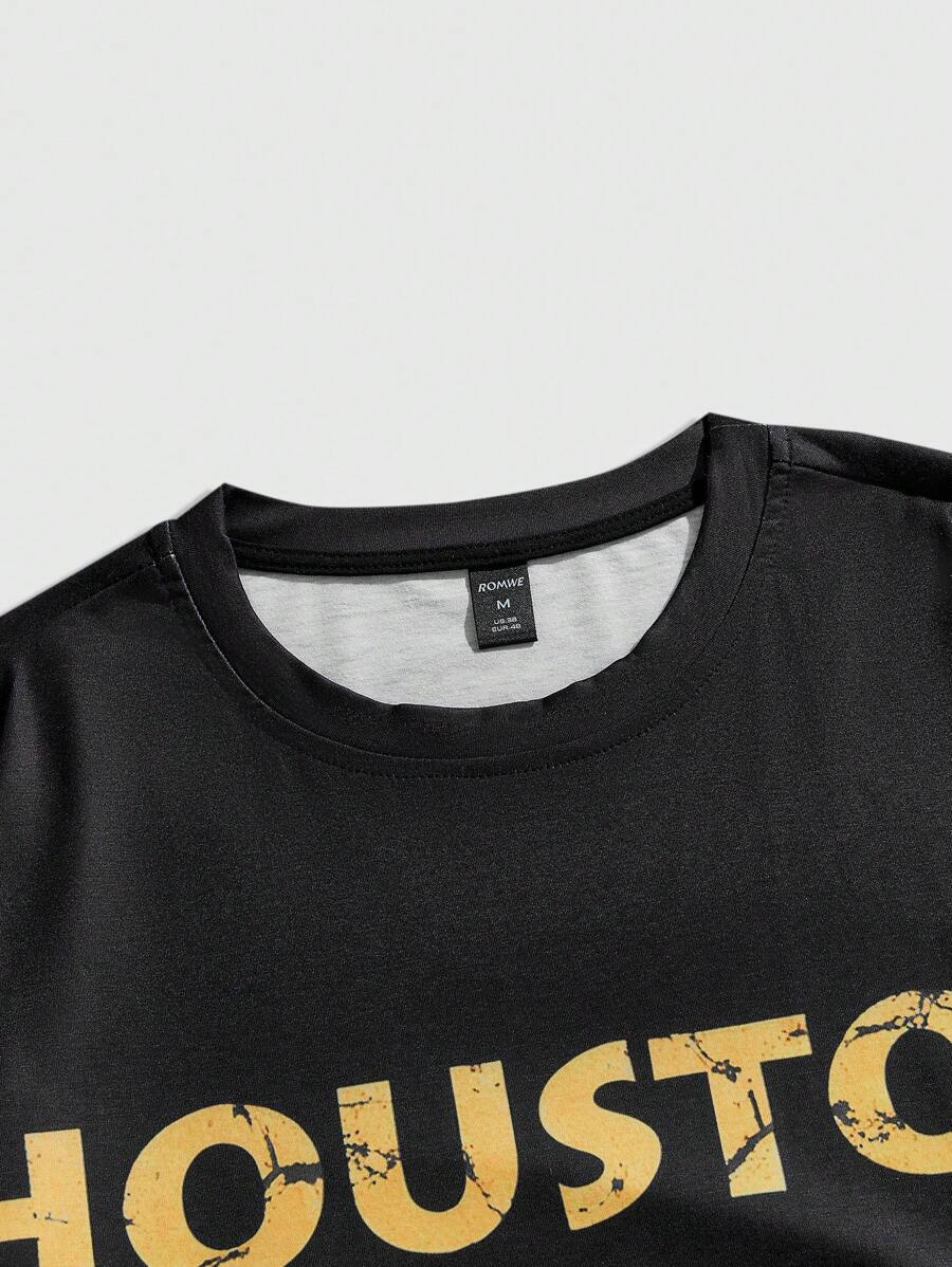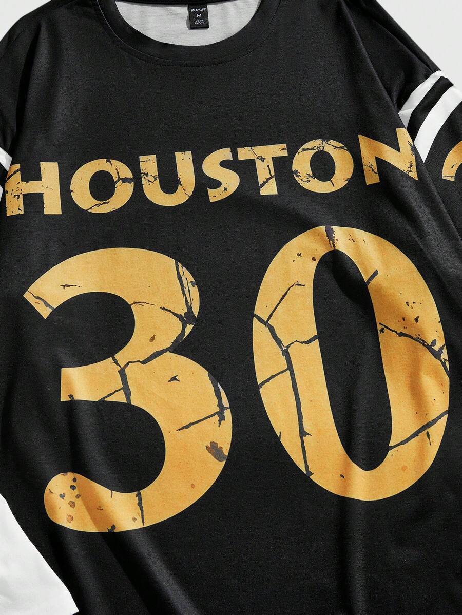 Prep Camiseta casual de manga larga con cuello redondo y estampado de letras para hombres, de diseño 2 en 1, para otoño