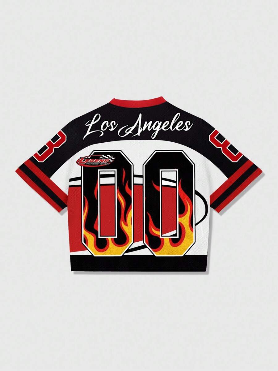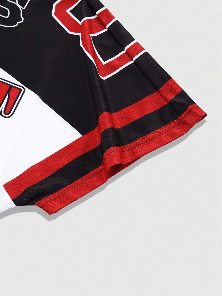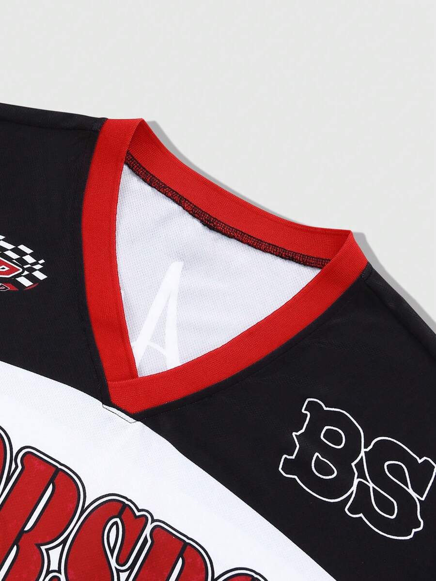 Prep Camiseta informal holgada de manga corta y cuello en V con estampado de letras para hombres
