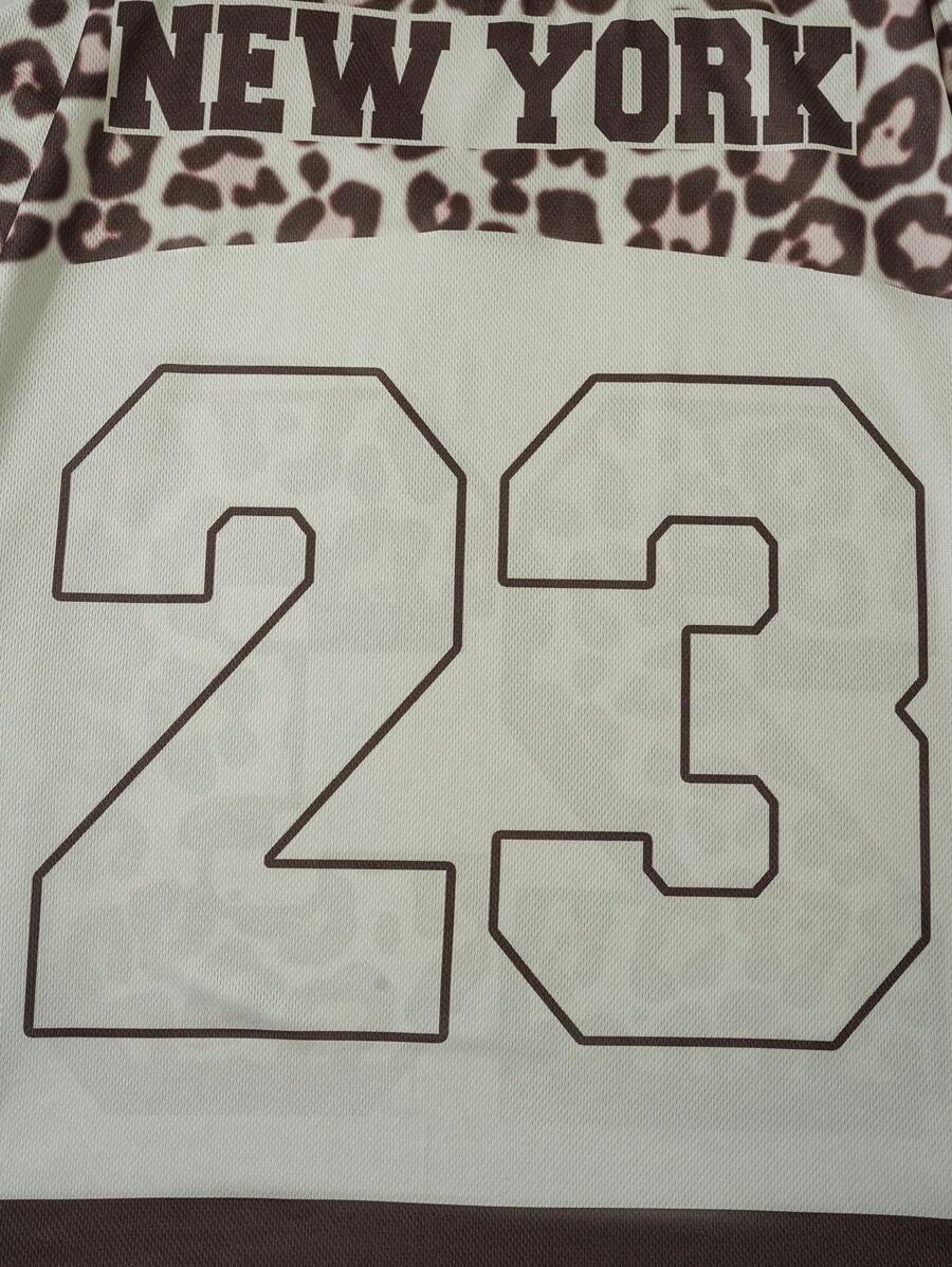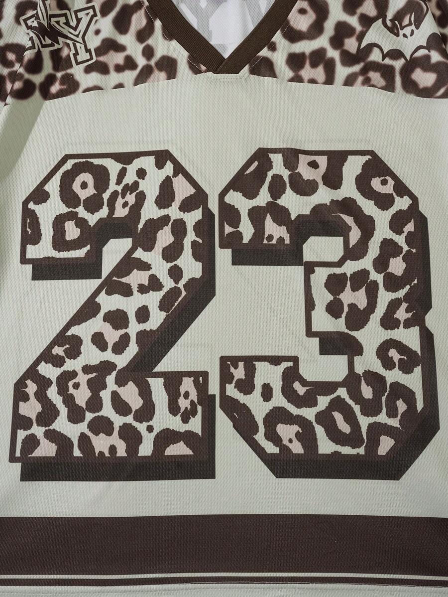 Prep Camiseta de cuello en V con parche de estampado de leopardo y malla para hombres, primavera/verano