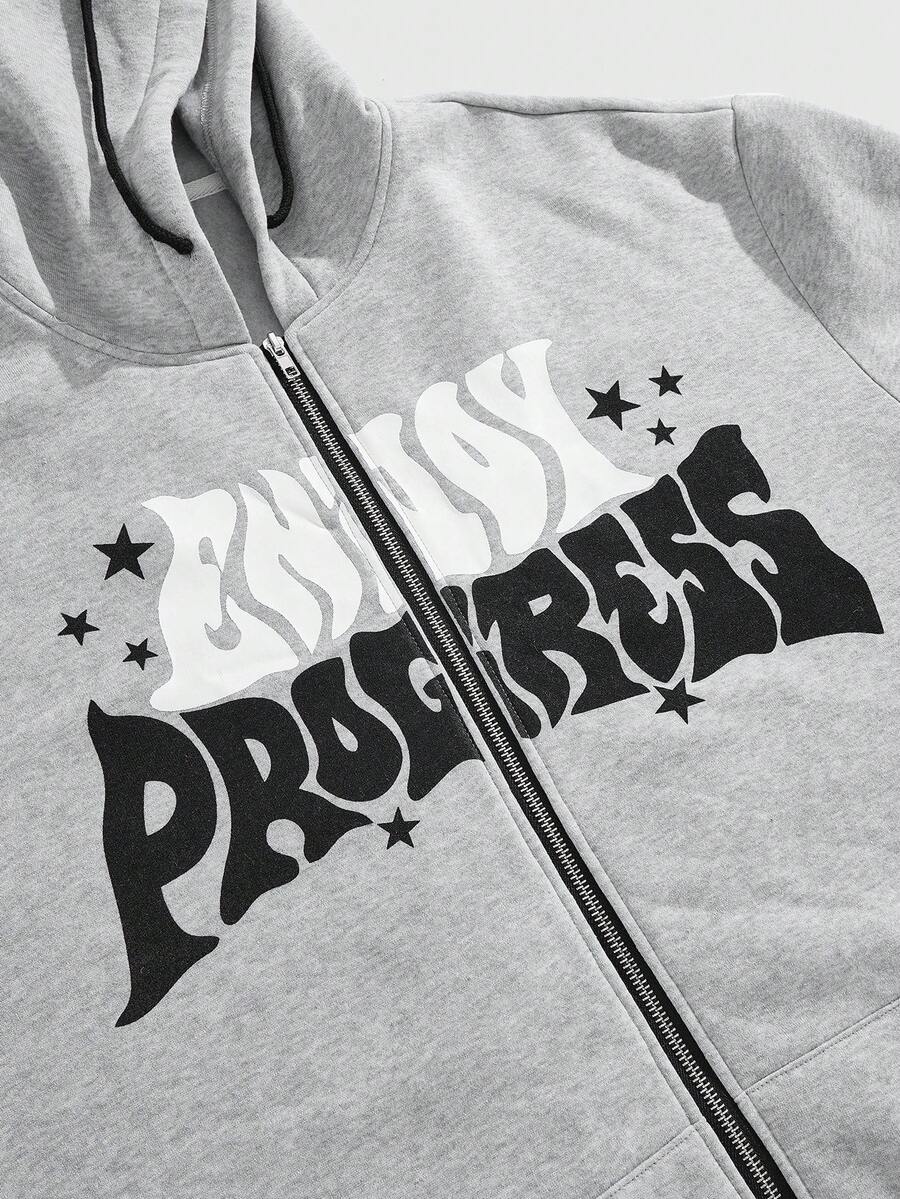 Prep Sudadera con capucha y cierre delantero con estampado de letras, informal, para hombre, para el otoño