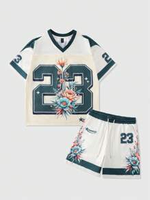 Prep Conjunto de camiseta de gimnasio para hombre con mezcla de tela brillante y malla