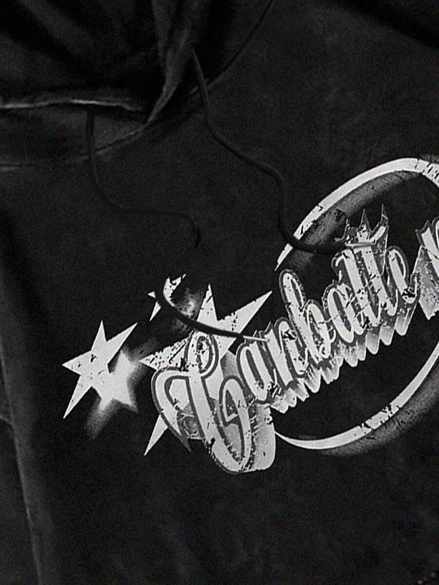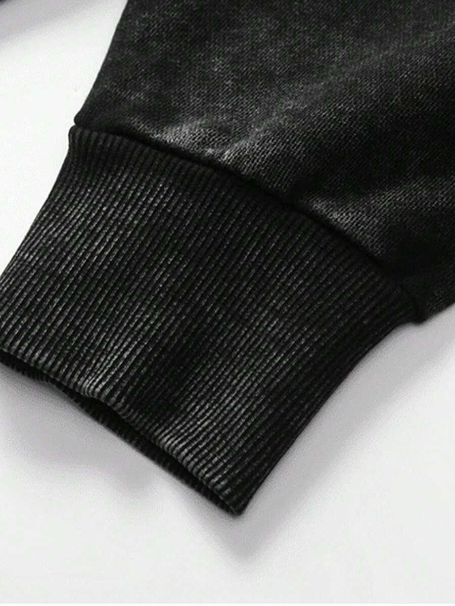 Prep Sudadera con capucha simple estampada con bolsillos en diagonal, sudadera de manga larga, negra, para hombre