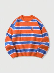 Prep Jersey de manga larga a rayas para hombre, corte holgado y acortado, otoño e invierno
