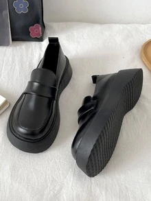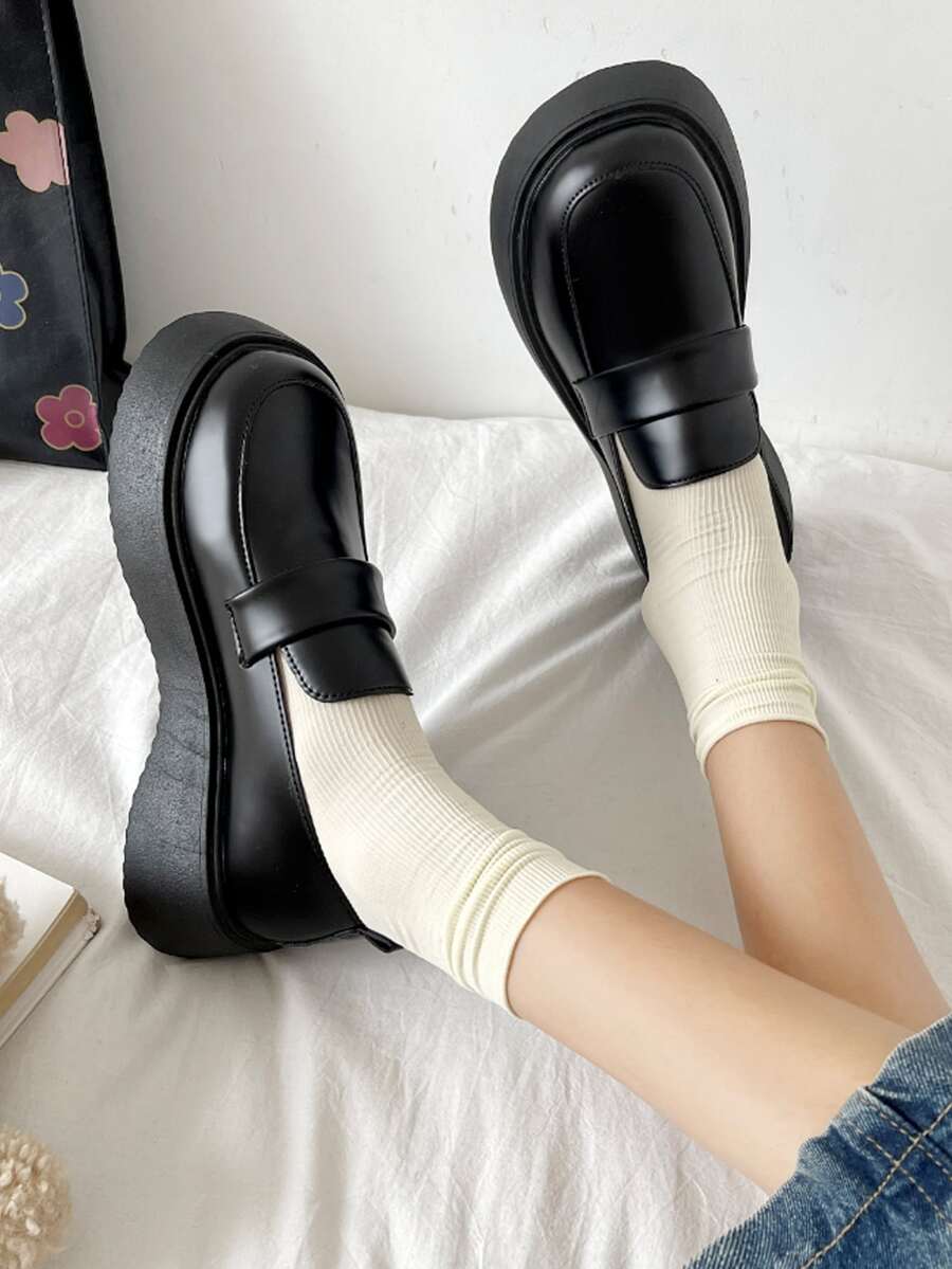 preppy negro Zapatos mocasines para con diseño de puntada plataforma Zapatos