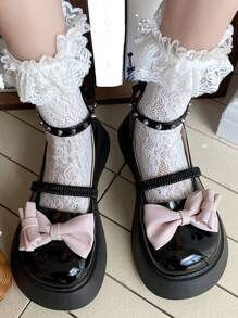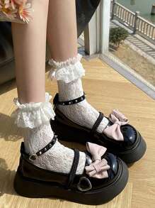 Kawaii preppy Zapatos mary jane para claveteado & con diseño de lazo plataforma Zapatos