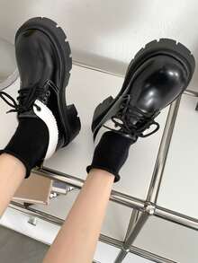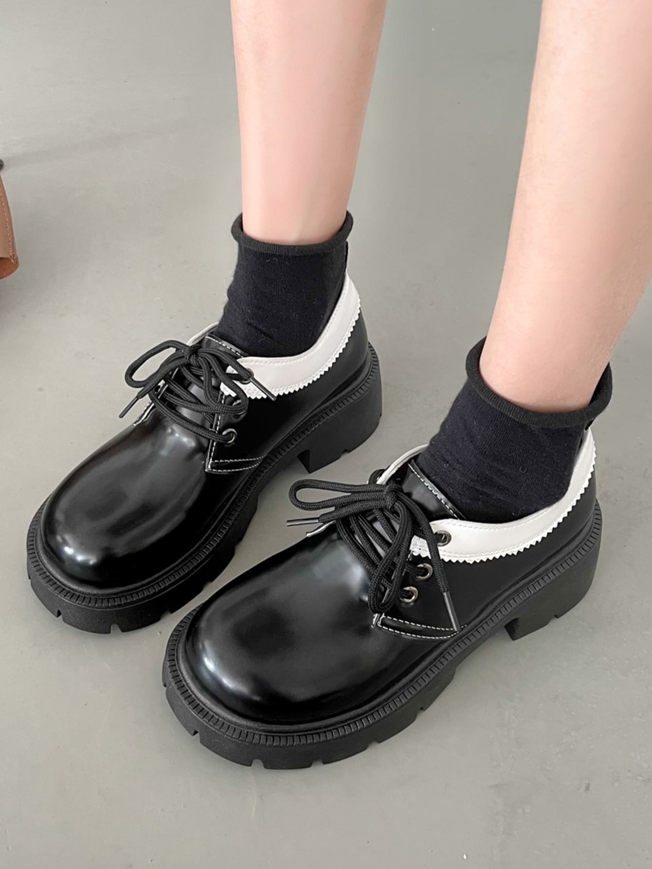 preppy Zapatos oxford Mujer de dos tonos con cordón delantero Cuñas & plataforma