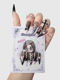 Kawaii 10 piezas de decoraciones de arte de uñas hechas a mano con estilo retro Y2K, lunares, rayas, arte pop, grunge, alas, notas musicales, uñas postizas de estilo minimalista japonés Harajuku, adecuadas para la universidad, festivales de música, citas