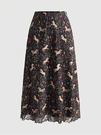 EDITION Falda midi de línea A de terciopelo con encaje y estampado floral vintage para mujer
