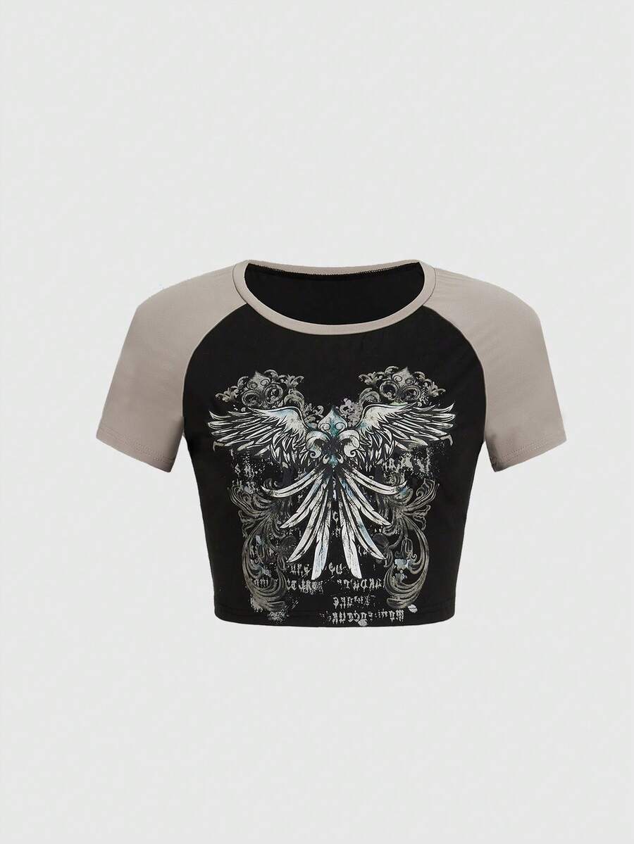 Grunge Punk Camiseta de talla grande con estampado de alas y cruz vintage de estilo punk callejero