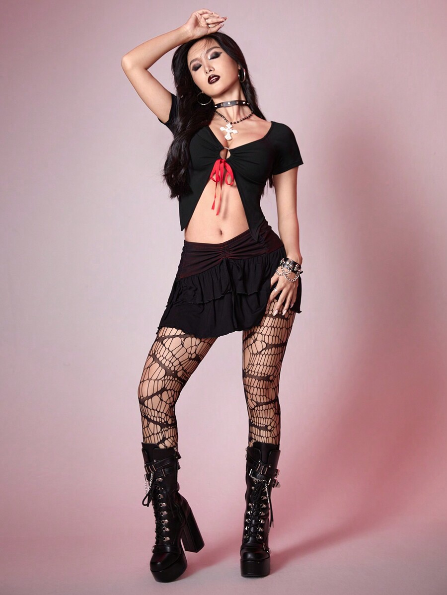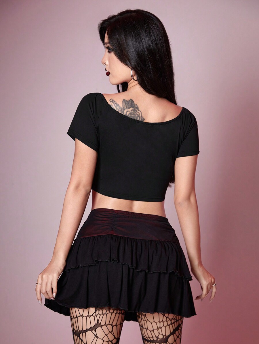 Camiseta de mujer con escote en V minimalista y sexy, con decoración de argolla de metal, estilo punk
