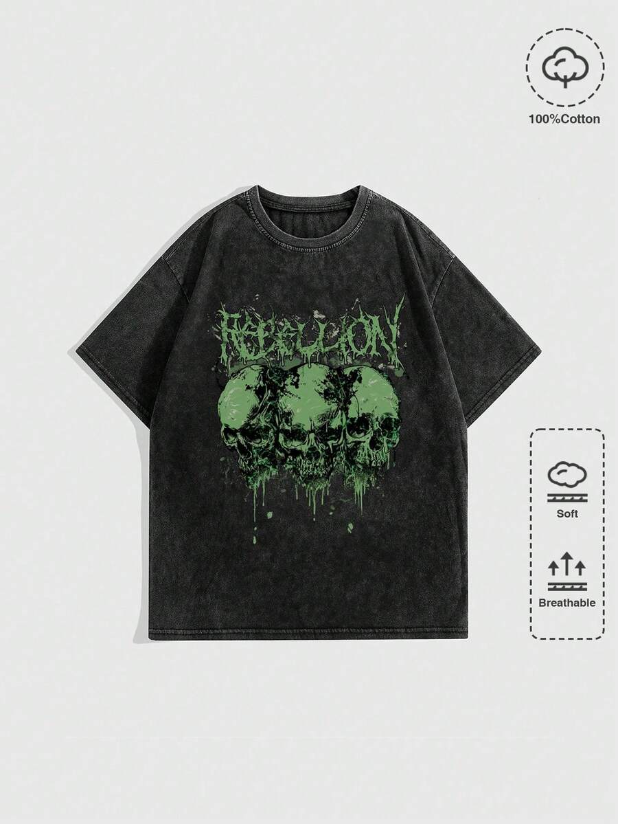 Grunge Punk Camiseta de mujer estilo punk con calavera y letras impresas, holgada y con diseño desgastado