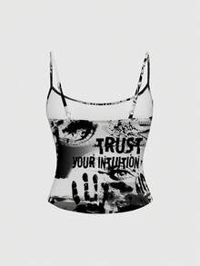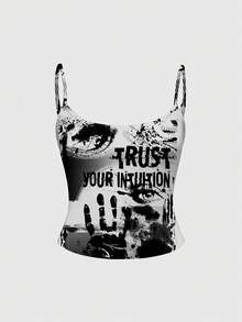 Grunge Punk Camiseta sin tirantes gris gráfica vintage y sexy para mujer