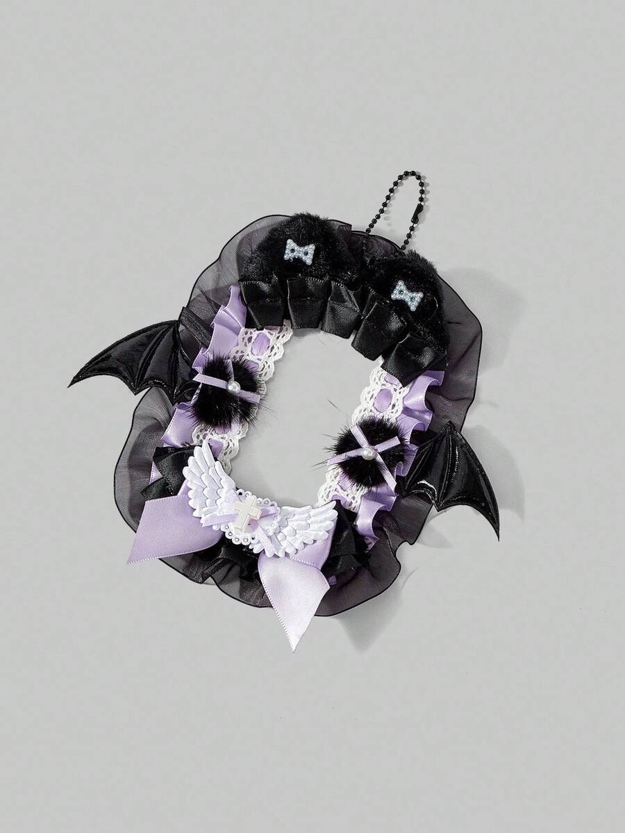 Anime Bolso con colgante de orejas de gato con alas, parche de encaje morado con lazo, estilo casual y anime, multifuncional para tarjeta de autobús, tarjeta de identificación, foto