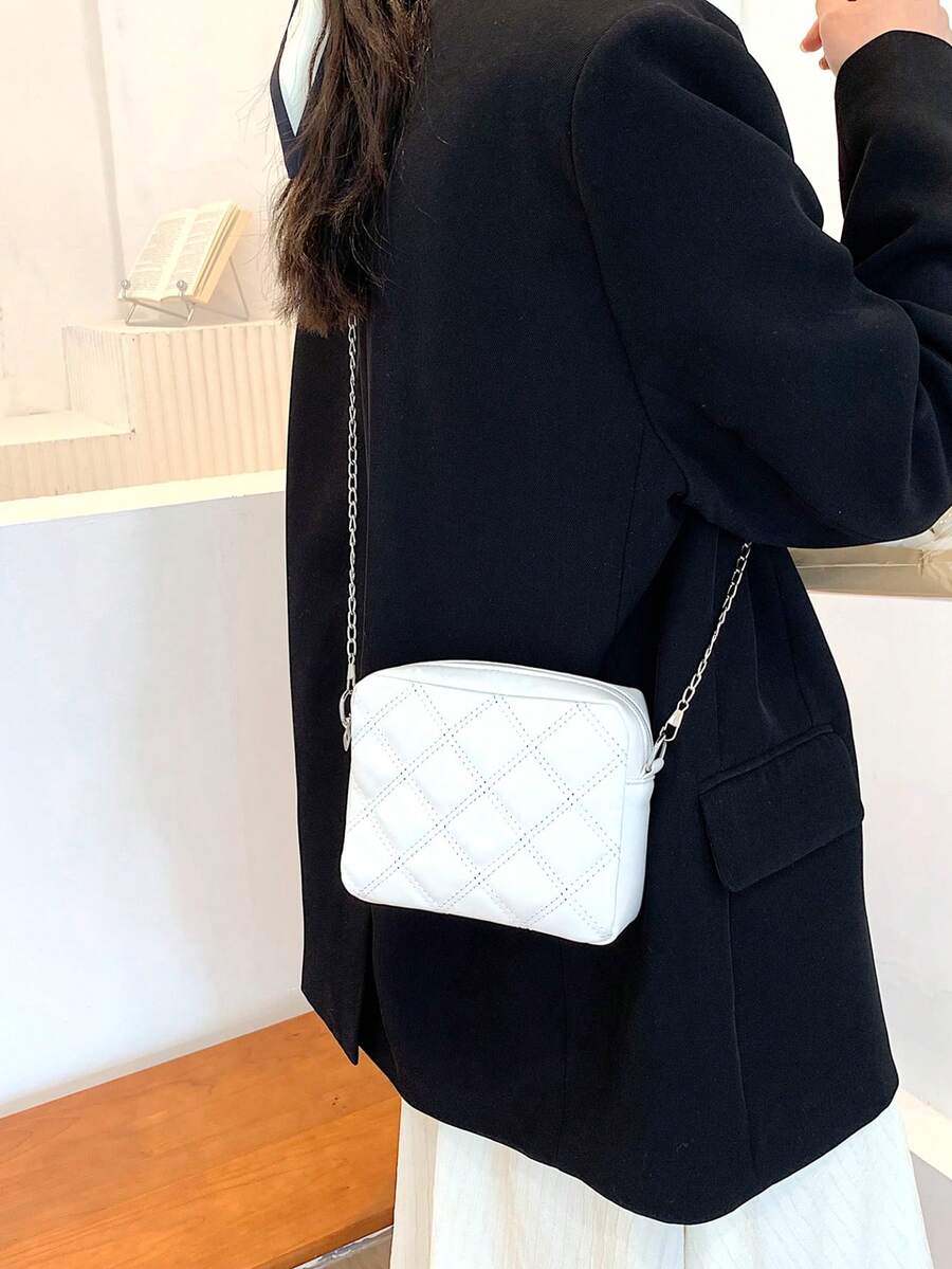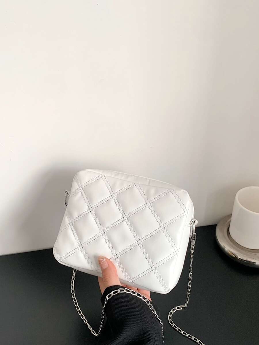 Bolso cuadrado guateado mini cremallera blanco