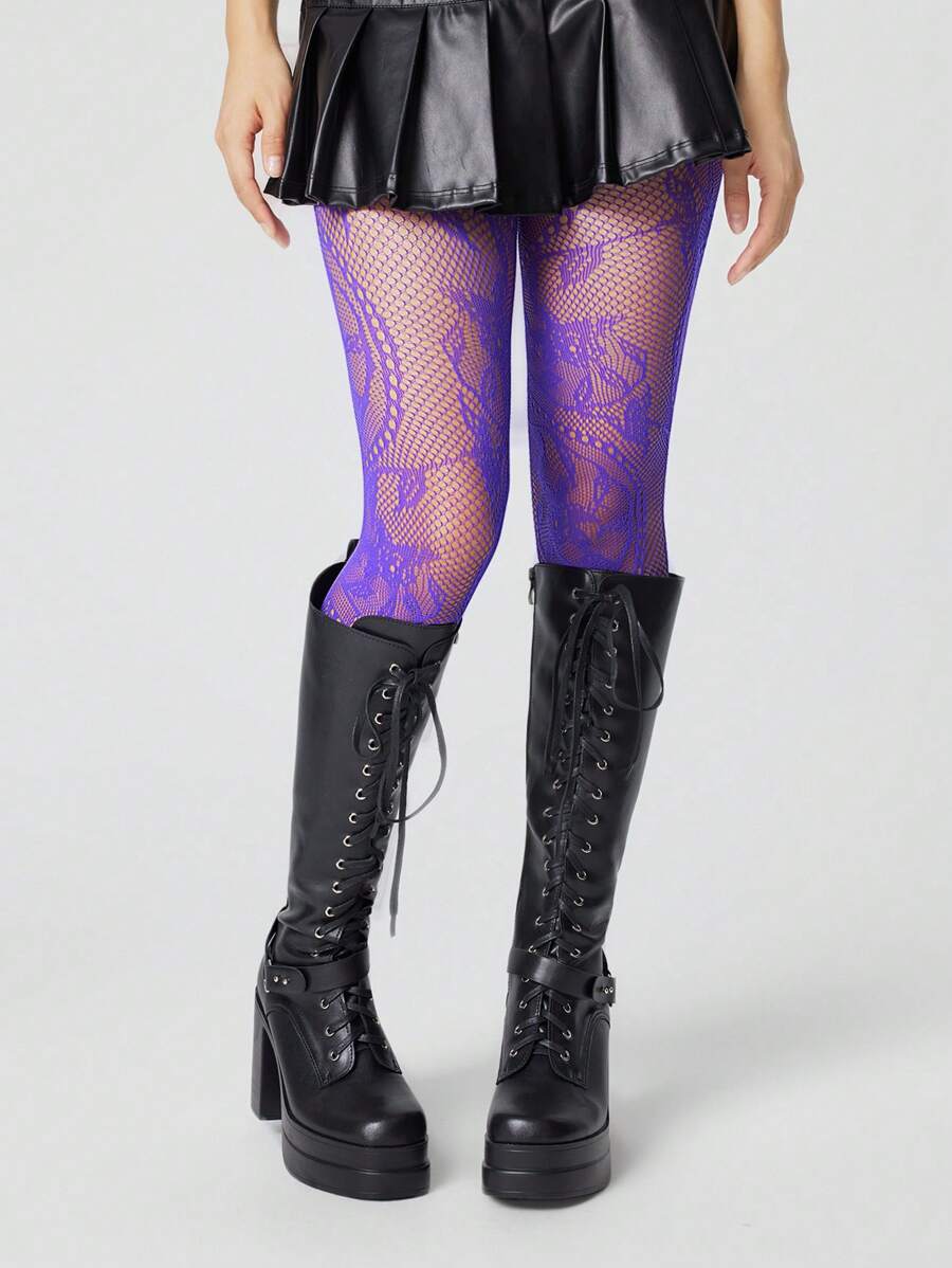 ROMWE Avant 1 par de medias de red sexys, mallas transparentes con cordones retro en púrpura, ropa interior de base ultra delgada y elástica