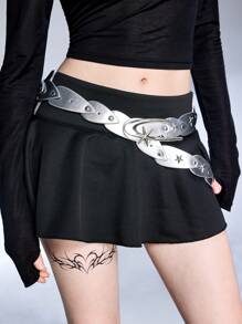 ROMWE Avant 1 pieza Cinturón color plata vintage, cinturón con diseño de estrella de metal de moda Y2K, accesorio de cintura único y de