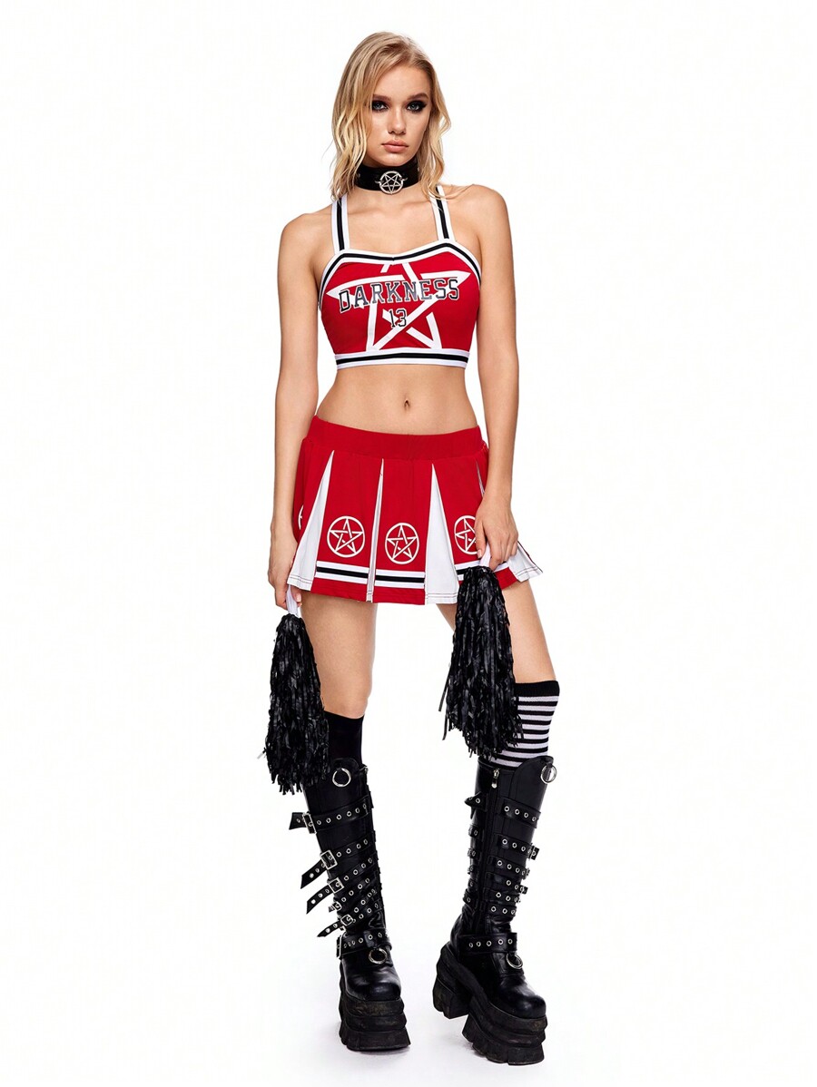ROMWE Avant Set de 2 piezas de disfraz de animadora con estampado de pentagrama sexy
