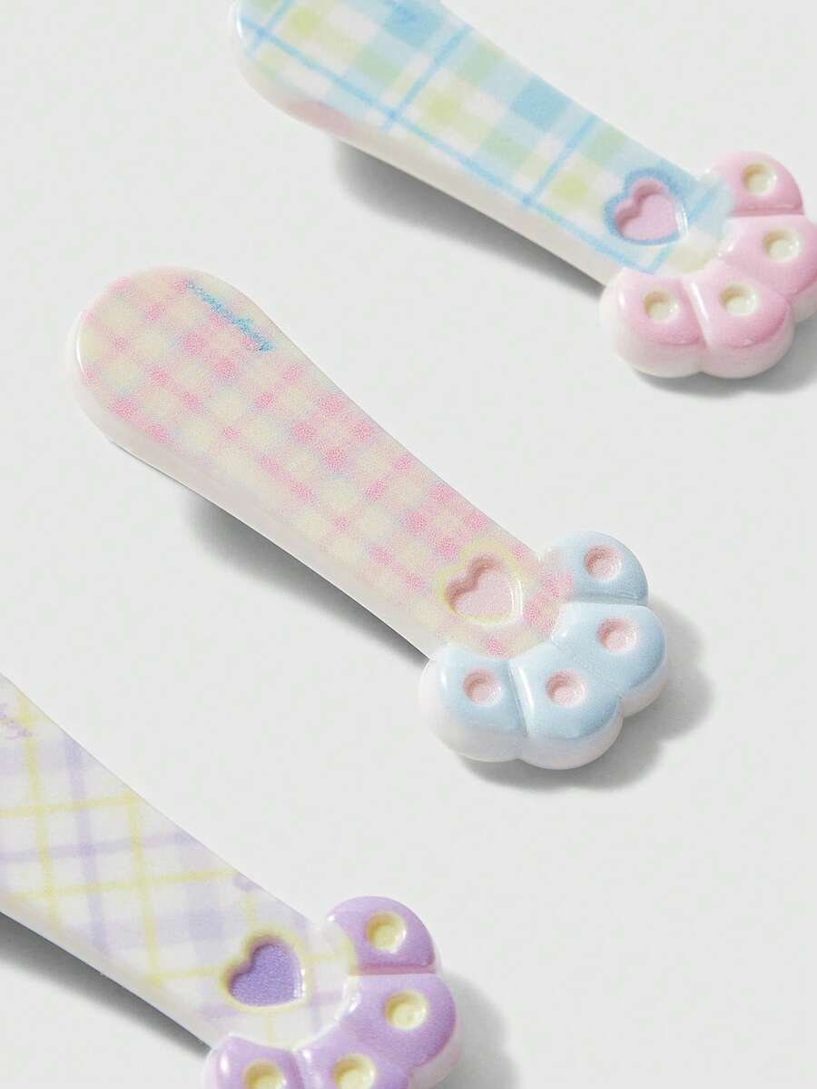 ROMWE Avant Set de 3 pinzas para el cabello con diseño de pata de gato a cuadros y rayados en colores aleatorios, lindos accesorios para el cabello con forma de pata de gato de estilo kawaii, para uso diario y fiestas