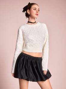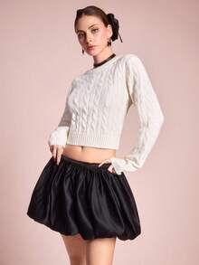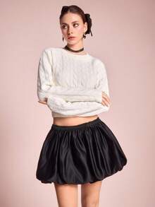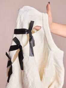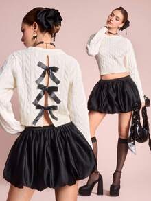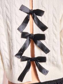 ROMWE Avant Suéter holgado y casual con lazo calado único para mujer, para otoño/invierno