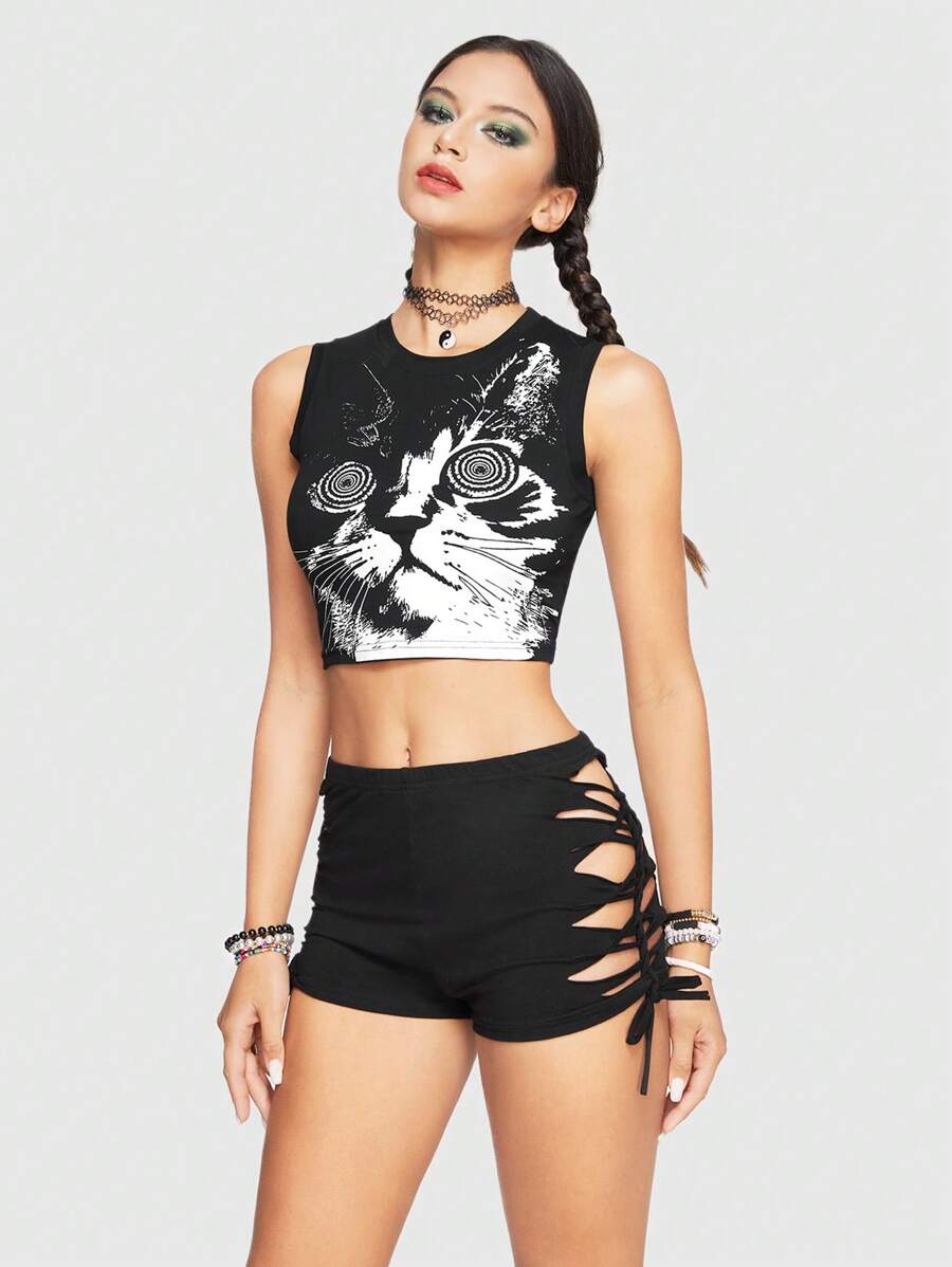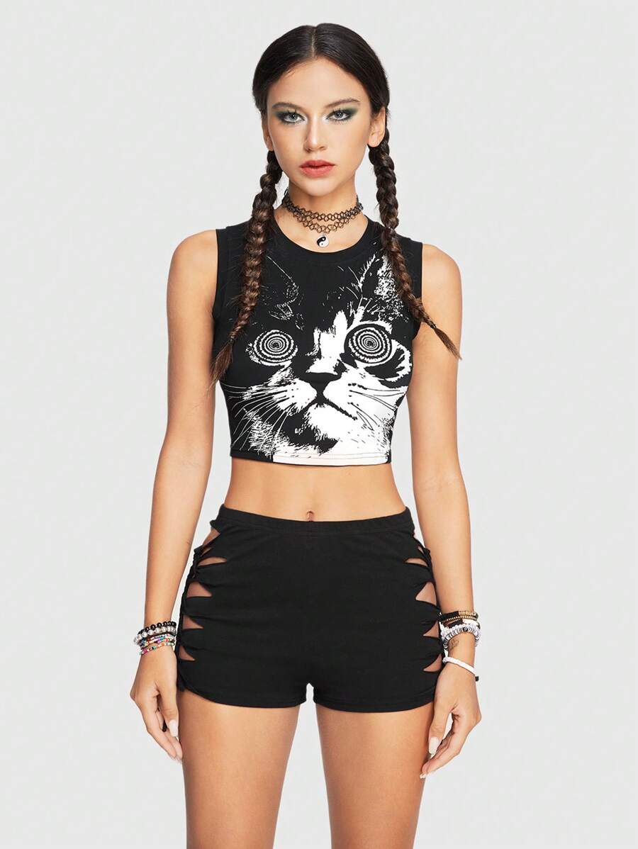 ROMWE Avant Camiseta de tirantes con estampado de gato