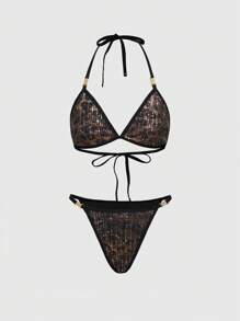 ROMWE Avant Conjunto de sujetador inalámbrico con lentejuelas de leopardo para mujer, para festival de música de moda