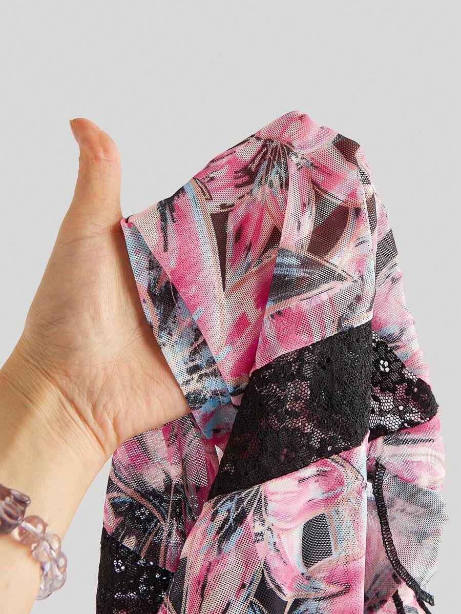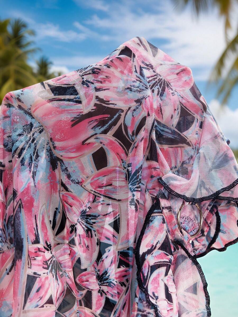 ROMWE Avant Top de tirantes con estampado floral, encaje de contraste, cordón en el cuello, volantes multicapa en el dobladillo para vacaciones y playa de mujer